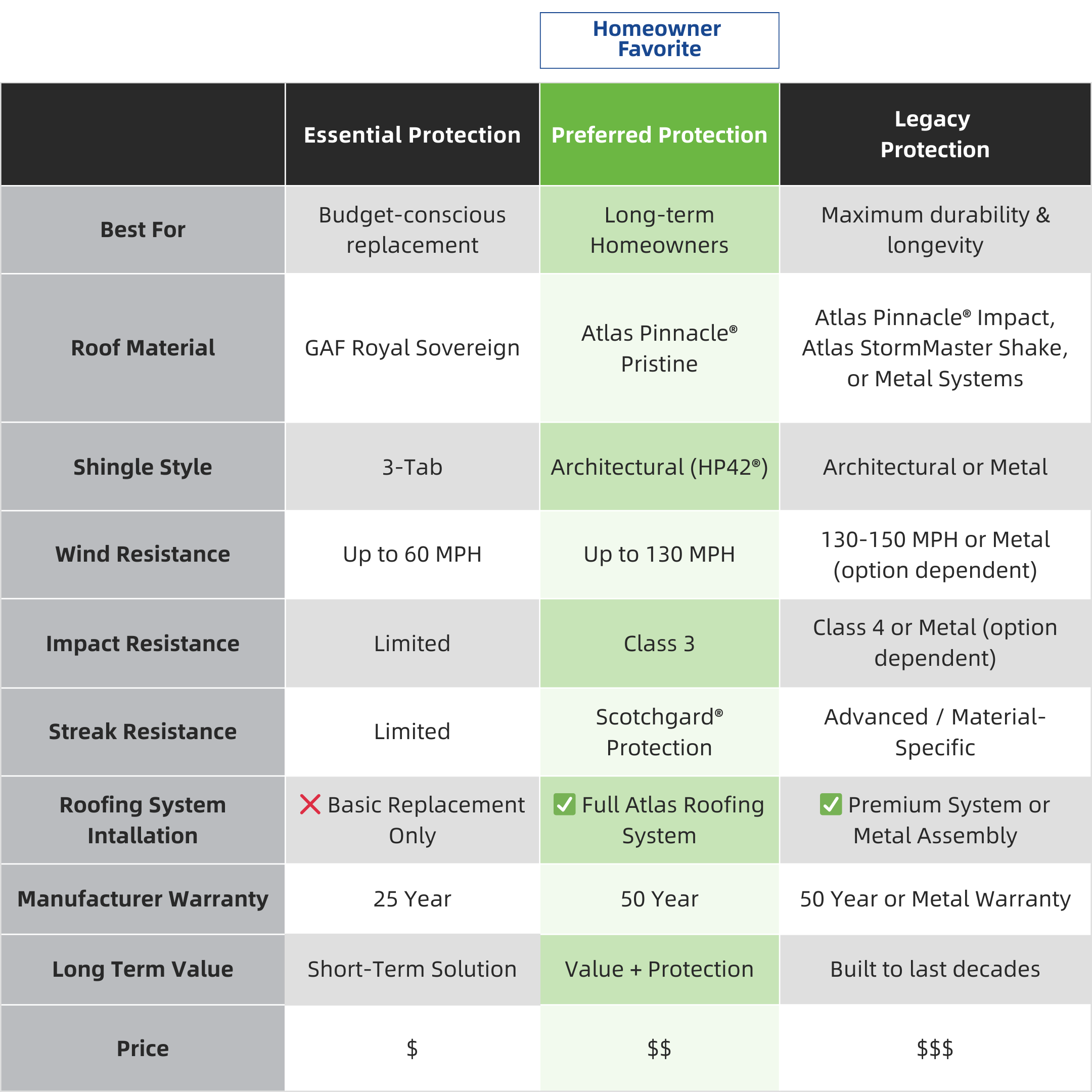 This option is ideal for the storm-conscious homeowner who is looking for a long-term roofing solution with maximum protection for their home.